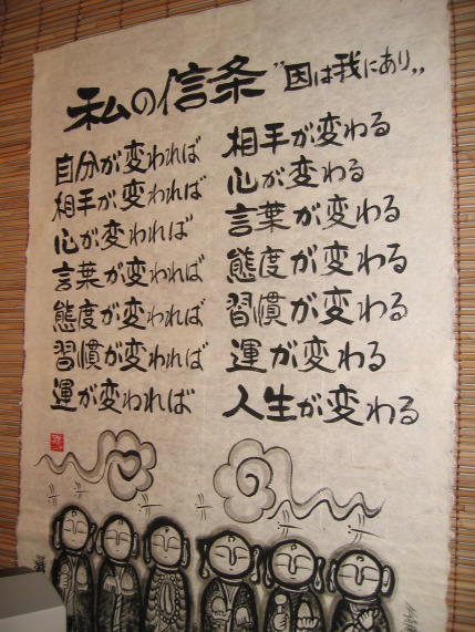 私達スタッフ同士もまた同じです。何かの縁でここに集い、何かの縁で支えあっているのだと思います。せっかくここに集ったのですから、一つの家族として存在したい。その中で互いに意見し合い、時には互いに傷つくこともあるかと思います。自分以外の人は自分の思うようには行動しないものです。私は、このグループホームを始める前にスタッフに云いました。「自分が変わらなければ、相手は変わらない」と。名刺の裏に書いてあります。